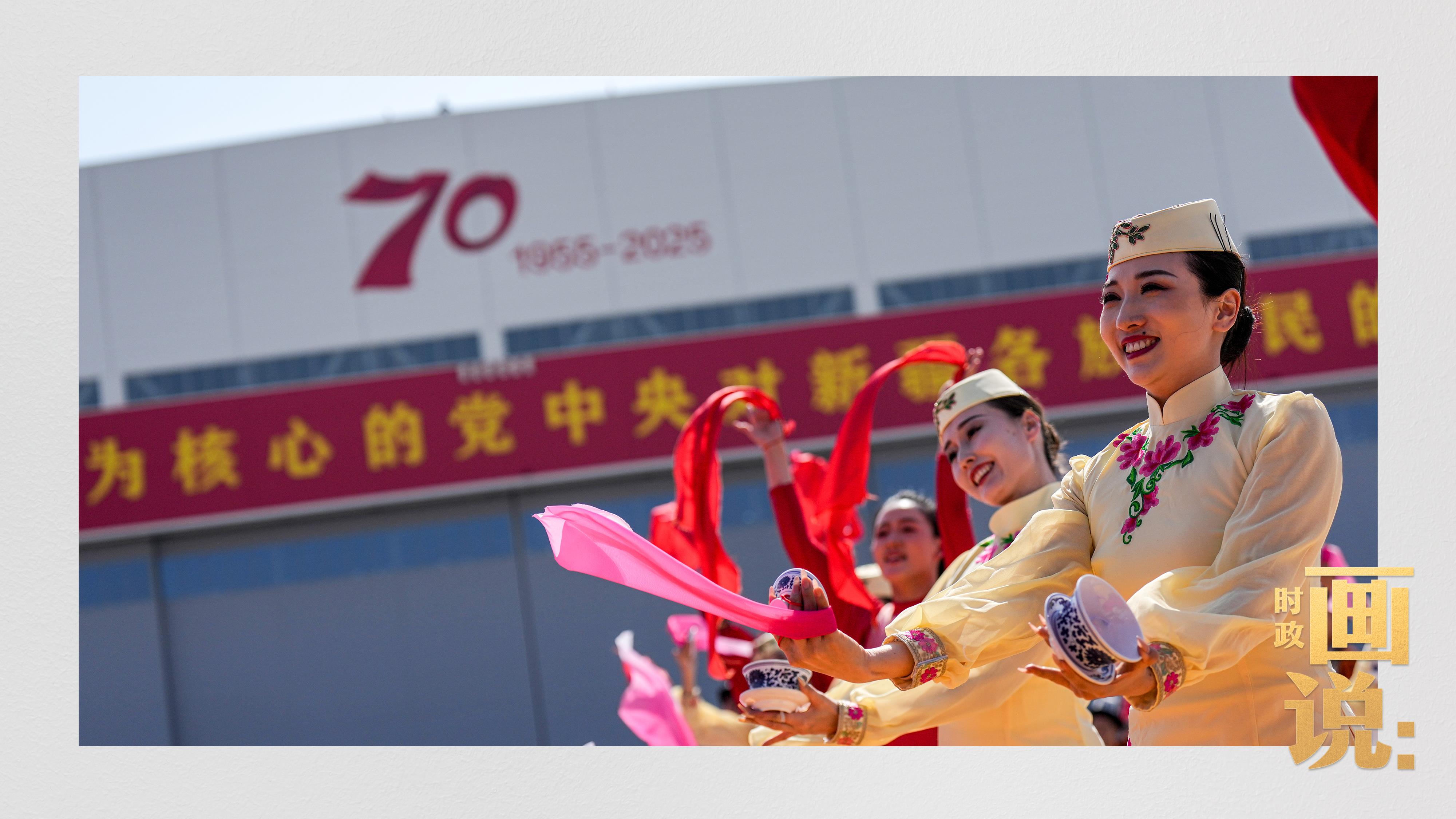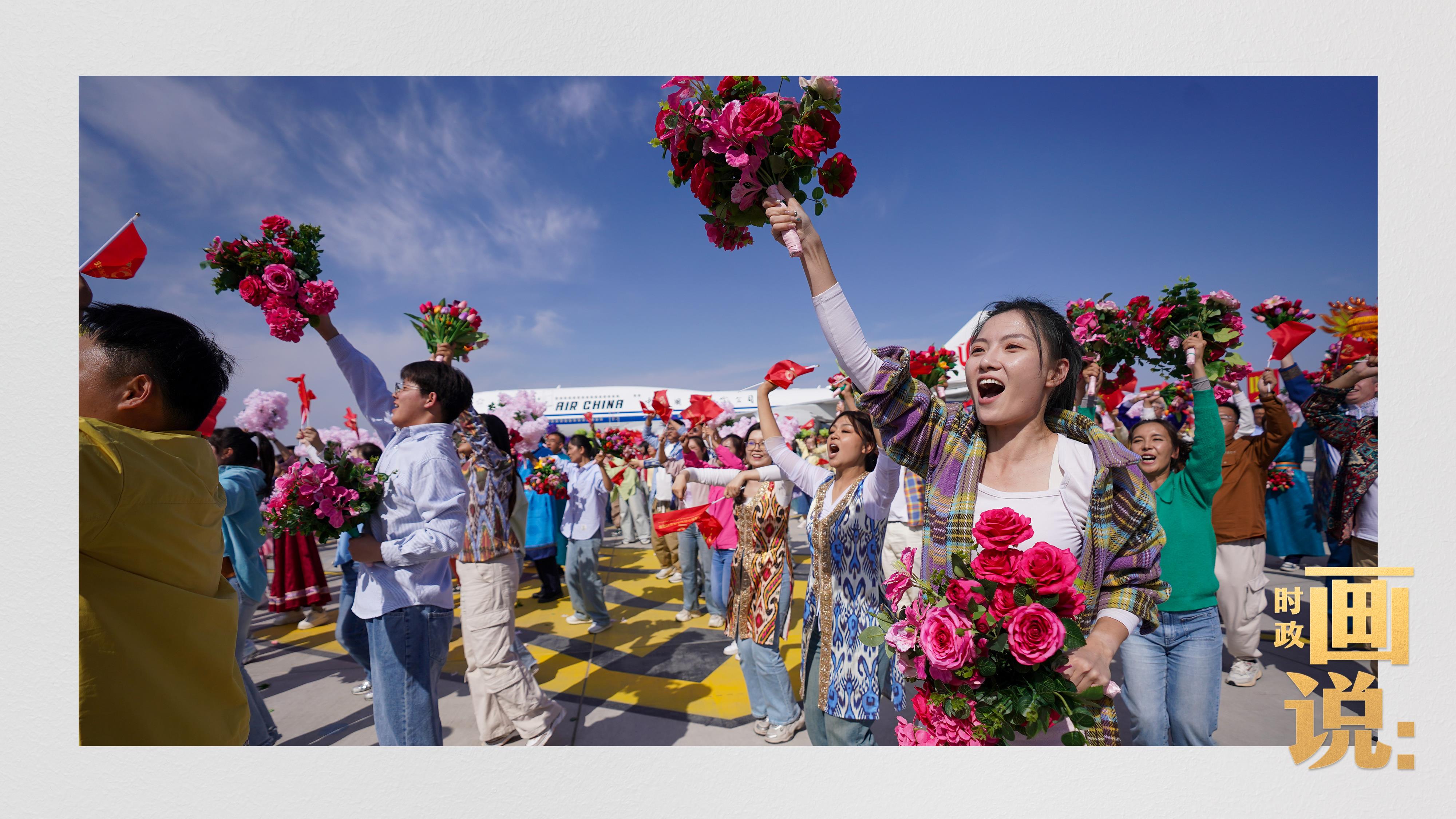 中共中央總書記、國家主席、中央軍委主席習近平率中央代表團23日下午乘專機抵達烏魯木齊,出席新疆維吾爾自治區成立70周年慶祝活動。習近平在機場受到新疆各族群眾的熱烈歡迎。