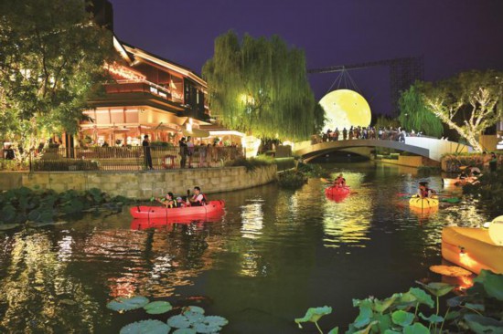 9月21日晚,嘉興市區南湖天地,一輪巨大的月亮裝置在夜色中散發著柔和而明亮的光芒,仿佛將中秋的浪漫氛圍提前拉滿。市民、游客們泛舟于湖面,任由“月光”與霓虹的光影在水面上交織閃爍,沉浸在這如夢如幻的場景中,感受著中秋佳節的臨近,心中滿是對團圓與美好的期盼。(徐志達)