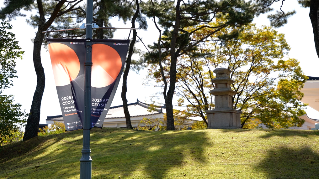 時值亞太經(jīng)合組織第三十二次領(lǐng)導(dǎo)人非正式會議,印有APEC標(biāo)識的條幅在慶州隨處可見。