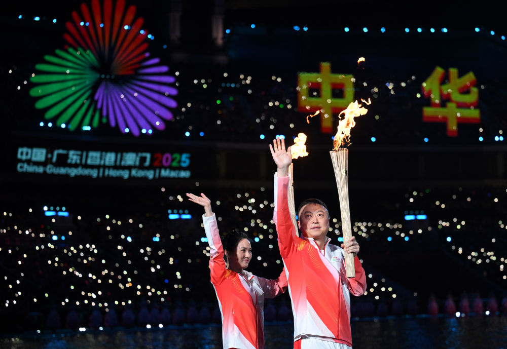 廣東省體育代表團、香港特別行政區體育代表團和澳門特別行政區體育代表團在入場儀式上共同入場。新華社記者江漢攝