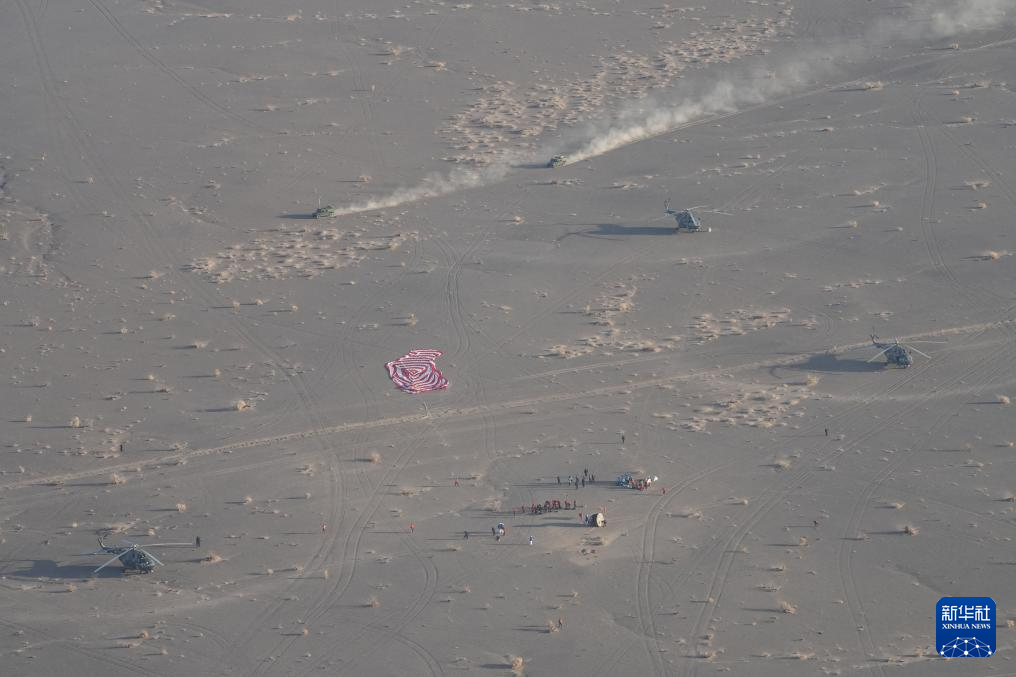 11月14日,載著神舟二十號航天員乘組的神舟二十一號載人飛船返回艙在東風著陸場成功著陸。新華社記者 李明剛 攝