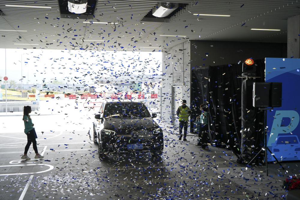 11月15日上午,香港機(jī)場(chǎng)管理局在香港口岸自動(dòng)化停車場(chǎng)舉辦歡迎儀式,迎接“粵車南下”旅客。新華社發(fā)(郭辛 攝)