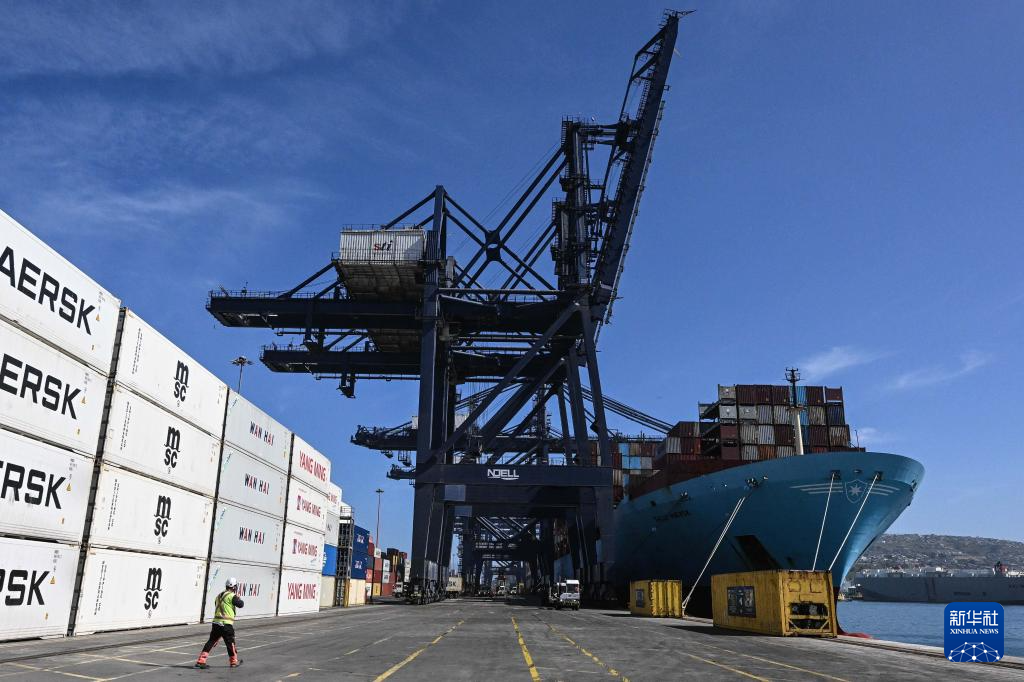 這是11月18日在智利圣安東尼奧港拍攝的服務于“車厘子快線”的貨輪。新華社發(豪爾赫·比列加斯攝)