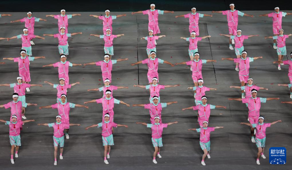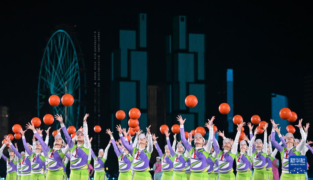 11月21日,演員在閉幕式現(xiàn)場(chǎng)表演第九套廣播體操。