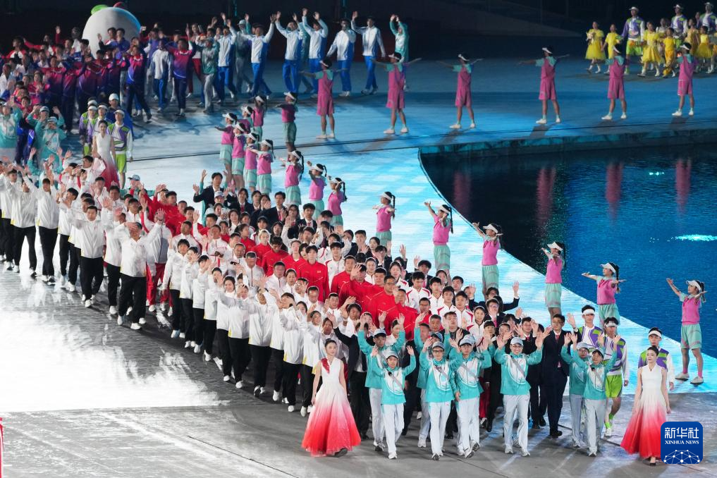 11月21日,廣東省體育代表團(tuán)、香港特別行政區(qū)體育代表團(tuán)和澳門特別行政區(qū)體育代表團(tuán)代表在閉幕式入場(chǎng)儀式上共同入場(chǎng)。