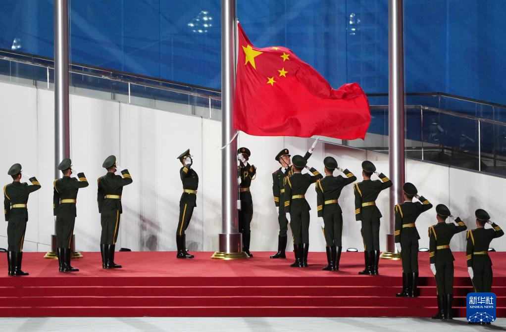 這是11月21日拍攝的閉幕式上的升國(guó)旗儀式。