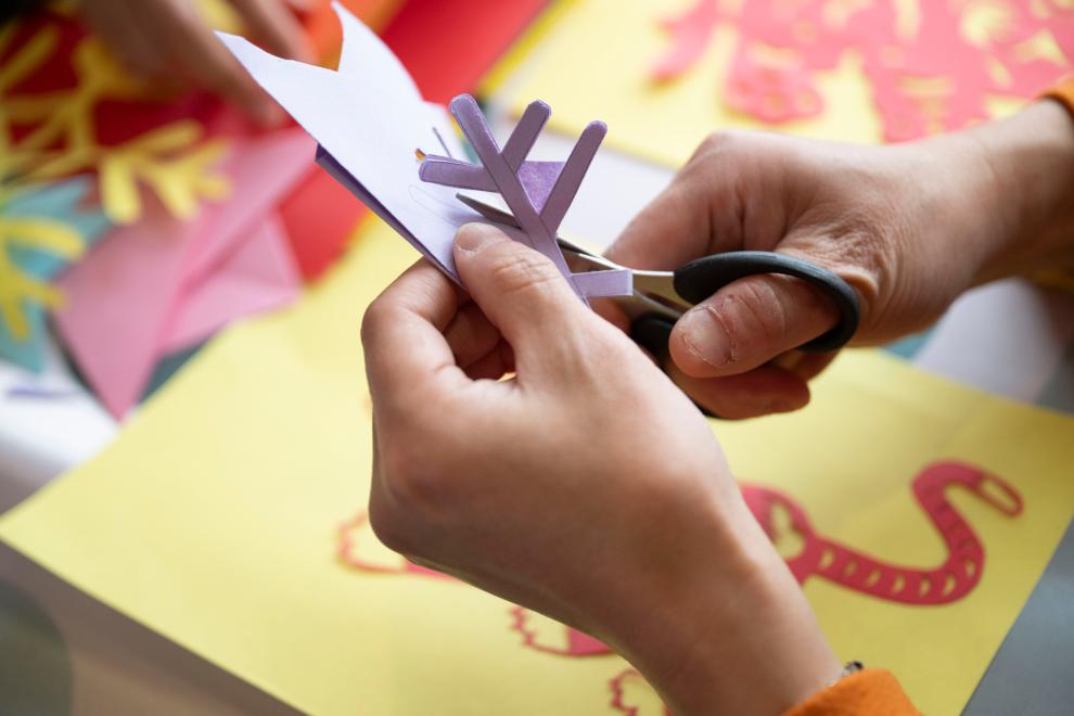 11月26日,游客在Y783次“悠享龍江·銀旅號(hào)”旅游列車(chē)上體驗(yàn)剪紙。新華社記者 張濤 攝