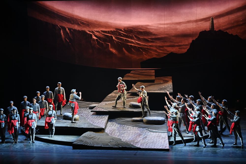 2025年7月29日,演員在陜西延安的金延安文化旅游產業園區表演紅色歌舞劇《延安十三年》。近年來,延安市以“傳承紅色基因”為目標,采用新科技、新理念、新手段,推出多部高質量劇目。生動感人的故事情節、富有沖擊力的視聽效果、沉浸式的觀賞體驗——守正創新的表達方式讓紅色文化“活起來”。