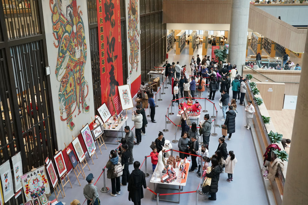 2025年1月1日,觀眾在位于西安的陜西省圖書館高新館區內參觀一場非遺文化展覽。西安市持續推出各類主題和形式的公共文化活動,為市民、游客提供豐富的精神文化生活。