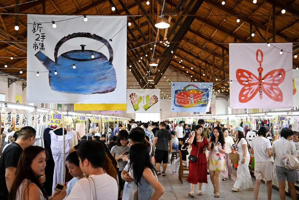 2025年7月5日,游客在西安西倉市集文創公園內的“新二手市集”上參觀游覽。2024年以來,西安對西倉區域實施“微更新、輕改造”,在保留核心區傳統集市風貌的基礎上,升級改造原有設施,建設西倉市集文創公園,打造“復合型文化消費新場景”;通過引入創新業態、開設“新二手市集”等方式,讓咖啡潮玩、非遺體驗、城市記憶展覽等年輕化元素與市井煙火相融共生,使老城核心區在“微更新”中持續煥發新活力。