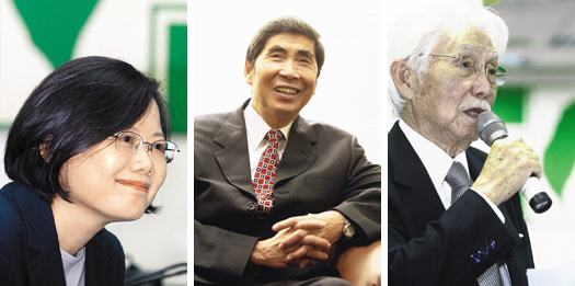 圖為3名民進黨主席參選人,從左往右依次為:蔡英文,蔡同榮,辜寬敏。(圖片來源:臺灣《聯合晚報》)