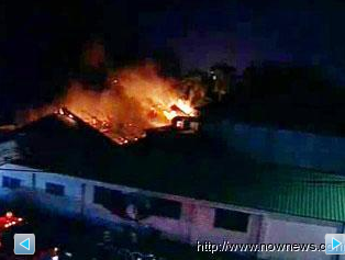 高雄市旗津海軍第四營區,7日凌晨疑似檔案室電線起火,大火延燒到隔壁彈藥庫,引爆里頭120顆高炮彈,營區瞬間陷入火海。(圖片來源:臺灣“今日新聞網”)