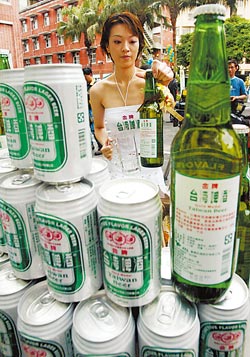 據報道,“臺灣啤酒”商標明年2月在大陸公告,5月將登陸;圖為金牌臺啤上市時特別請來美女促銷。(臺灣《中國時報》資料圖片)