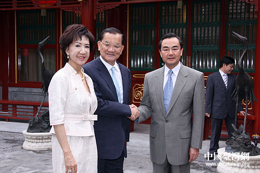 7月26日下午,中共中央臺辦主任王毅在北京釣魚臺國賓館會見中國國民黨榮譽主席連戰一行。(中國臺灣網 鐘寶華 攝)