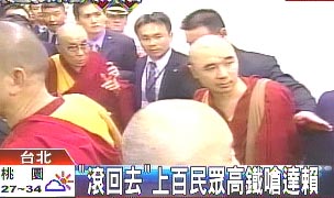 達賴深夜抵達臺灣,上百民眾高呼“滾回去”。來源:臺灣TVBS電視臺
