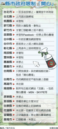 臺(tái)灣縣市政府禁玩開心農(nóng)場(chǎng)。(來源臺(tái)灣《聯(lián)合報(bào)》)