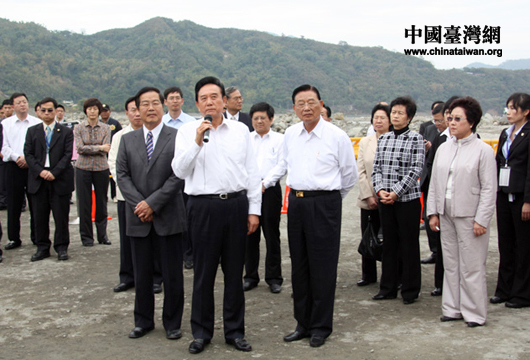 12月24日上午,海協會會長陳云林一行在臺灣;鶗麻L江丙坤陪同下到南投水里新山村壽山橋“莫拉克”風災災區進行參訪。(中國臺灣網 李徽 攝)