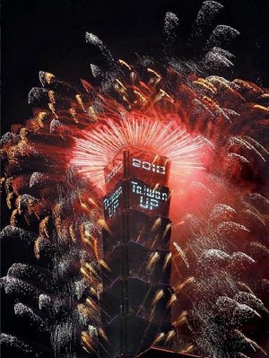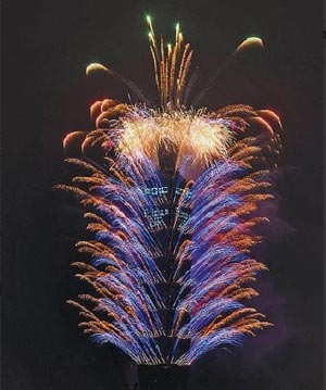 緊接上場(chǎng)的霹靂虎尾煙火,劈里啪啦撼動(dòng)全場(chǎng),101大樓外墻亮起“2010 Taiwan UP(意謂2010年臺(tái)灣會(huì)更好)”字樣,最后壓軸齊發(fā)1700發(fā)煙花,精采程度令人目不暇給,白閃花束、金閃虎尾等各款煙火齊升空,2.2萬(wàn)發(fā)煙火、歷時(shí)188秒的煙火秀在歡呼聲中結(jié)束。