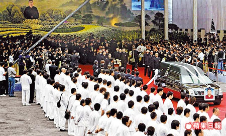 李照雄告別式會場占地165000平方米,逾20000人致祭,場面盛大,靈車在眾人送行下,緩緩駛出會場。 來源:臺灣《蘋果日報》