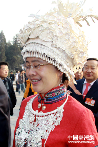 3月5日,十一屆全國人大四次會議在北京人民大會堂開幕。身穿民族服飾的大代表走入會場,成為兩會一道亮麗的風景。(中國臺灣網 董潔 攝)