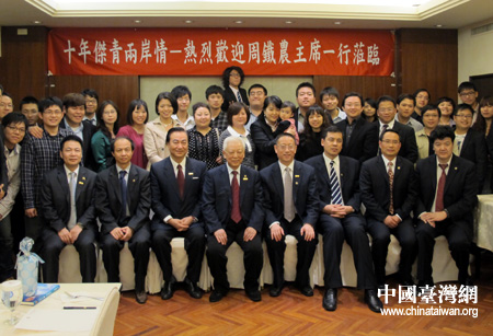 周鐵農代表參訪團一行向臺灣中華花藝文教基金會黃永川理事長贈送錦旗(圖片來源:民革中央)