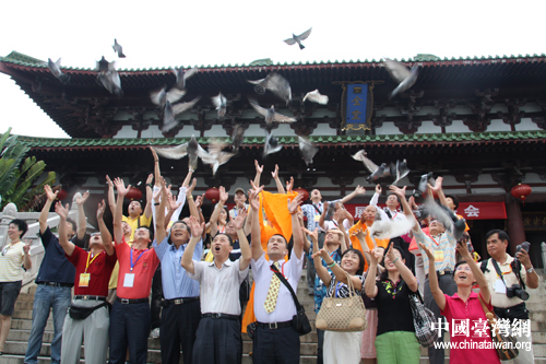 兩岸媒體記者共同放飛和平鴿(中國臺灣網 趙輝 攝)