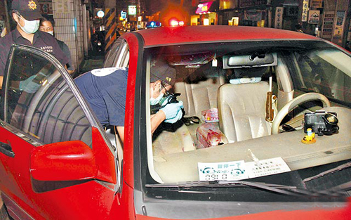 鄭成宇在臺中殺死女友后,運尸200公里回基隆自首,警方進行采證。圖片來源:臺灣媒體