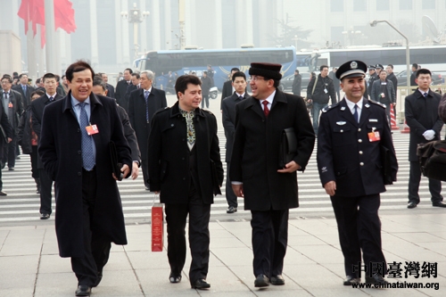 十一屆全國人大五次會議5日上午9時在北京開幕。圖為新疆代表團成員步入會場。(中國臺灣網(wǎng) 王偉)