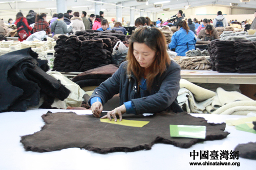 維信的女工正在裁剪毛皮。(中國臺灣網(wǎng) 王怡然 攝)