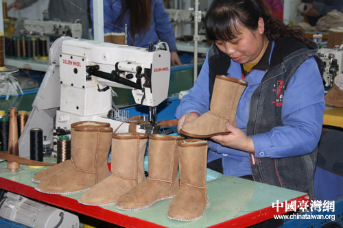 維信生產(chǎn)線上的毛靴制品。(中國臺灣網(wǎng) 王怡然 攝)