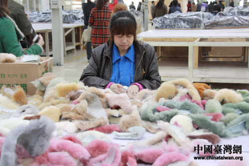維信的女工在分揀毛皮材料。(中國臺灣網(wǎng) 王怡然 攝)
