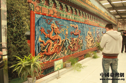 力王公司的“鎮(zhèn)宅”之寶——九龍壁掛毯。(中國臺灣網(wǎng) 王怡然 攝)
