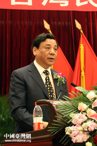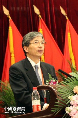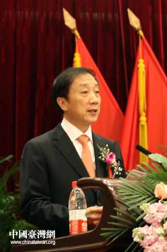 全國人大常委、臺盟中央常務(wù)副主席汪毅夫到會祝賀并致辭。(中國臺灣網(wǎng) 楊麗 攝)