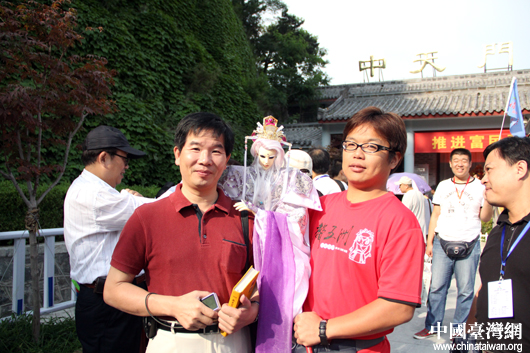 臺(tái)中聲五洲掌中劇團(tuán)團(tuán)長(zhǎng)王英峻(圖右)帶著他的布袋戲主角游覽泰山,“我的男主角也登山泰山啦!”(中國(guó)臺(tái)灣網(wǎng) 芮益芳 攝) 第1頁(yè)第2頁(yè)第3頁(yè)第4頁(yè)