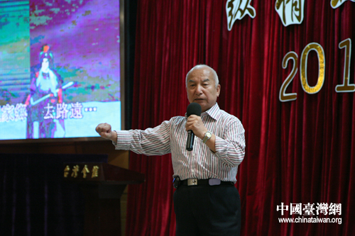 16日下午,“縱情北京·2012新臺(tái)生喜樂匯”在位于前門附近的臺(tái)灣會(huì)館舉行。在京老臺(tái)胞陳炳楠表演京劇《大雪飄 撲人面》。(中國臺(tái)灣網(wǎng) 普燕攝)
