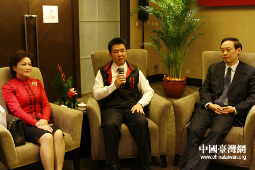嘉義市農(nóng)會(huì)總干事蕭淑麗(左)、嘉義市農(nóng)會(huì)理事長(zhǎng)黃騰輝(中)在會(huì)見中分別發(fā)表講話。(中國(guó)臺(tái)灣網(wǎng) 郭瑩瑩 攝) 第1頁第2頁第3頁