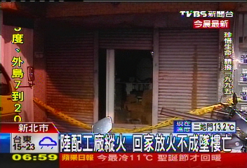 臺灣一陸配在工廠和家中縱火后跳樓自殺身亡(圖)
