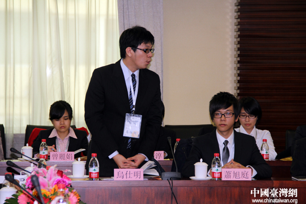 來自臺灣大學的博士生烏仕明同學在會上介紹自己。(中國臺灣網 芮益芳 攝)