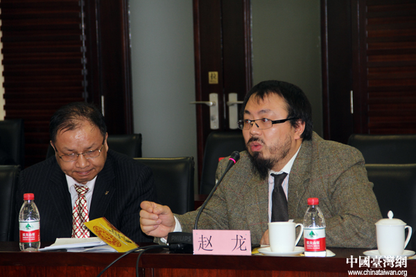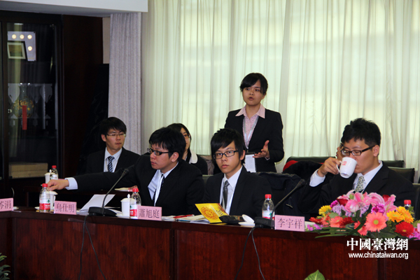 民革青年黨員代表趙龍與“杰青團”同學互相交流意見。(中國臺灣網 芮益芳 攝)