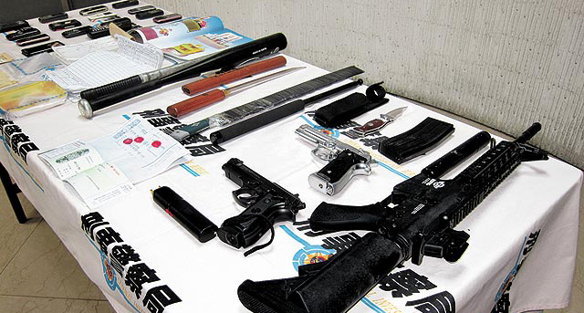 警方昨查扣開山刀、電擊棒、空氣槍及借據(jù)等證物。(圖片來自臺(tái)媒)