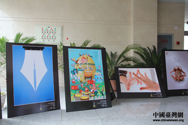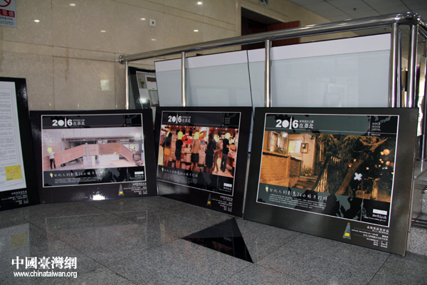會場外展出第21屆金犢獎獲獎作品。(中國臺灣網 張潔 攝)