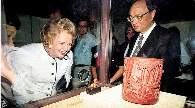 1992年撒切爾夫人(左)訪臺(tái)時(shí),曾到臺(tái)北故宮參觀。(圖片來自臺(tái)媒)