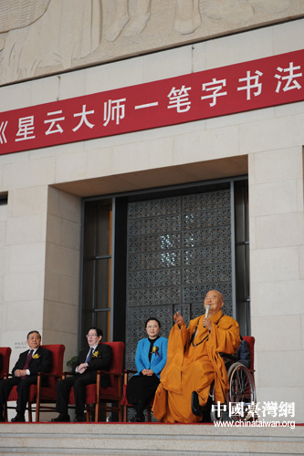 中國臺灣網4月20日北京消息 “星云大師一筆字書法展” 20日上午在北京中國國家博物館開展。本次展覽展出了其128件精采墨寶及用墨寶制成的精美陶瓷。這也是“星云大師一筆字書法展”第二度在首都展出。