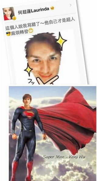 中國臺灣網6月24日消息 據臺灣媒體報道,吳克羣與澳門賭王千金何超蓮的戀情逐漸明朗化,屢次被抓包同游馬爾代夫、穿迷彩情侶裝等熱戀證據后,何超蓮昨(23)早高調在微博放男友吳克羣照片,以打情罵俏口吻寫:“這個人說我寫錯了,他自己才是超人。”網友驚呼“公開戀情”,她下午雖刪掉該照,但吳克羣隨即放上自己與超人的合成照,貼心呼應女友愛的呼喚。