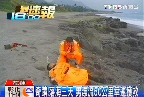 落海的曾連發(fā)家住花蓮,目前和女友同住,已經(jīng)有2個(gè)小孩,現(xiàn)在又即將迎接第3位新生兒。他為了貼補(bǔ)家計(jì),3日凌晨到花蓮溪捕鰻苗,沒想到卻不慎在出海口落海,幸好“當(dāng)時(shí)抓到浮木!”但由于東北季風(fēng)影響,在海上漂流長(zhǎng)達(dá)60小時(shí),最后被打到岸上時(shí)已經(jīng)“累到?jīng)]力”,只能癱軟在沙灘上。