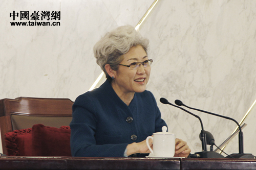 十二屆全國人大二次會議副秘書長、發言人傅瑩介紹了會議議程和人大工作相關情況,并回答中外記者的提問。(中國臺灣網 王思羽 攝)
