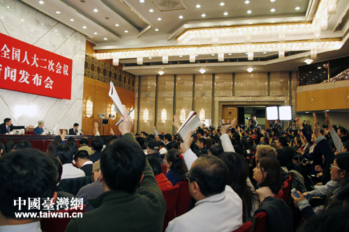 與會(huì)媒體爭相提問。(中國臺灣網(wǎng) 王思羽 攝)