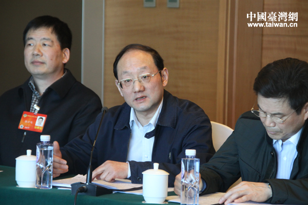 全國政協(xié)第十二屆二次會議的分組討論中,臺籍委員江利平正在發(fā)言。(中國臺灣網(wǎng) 張潔 攝)