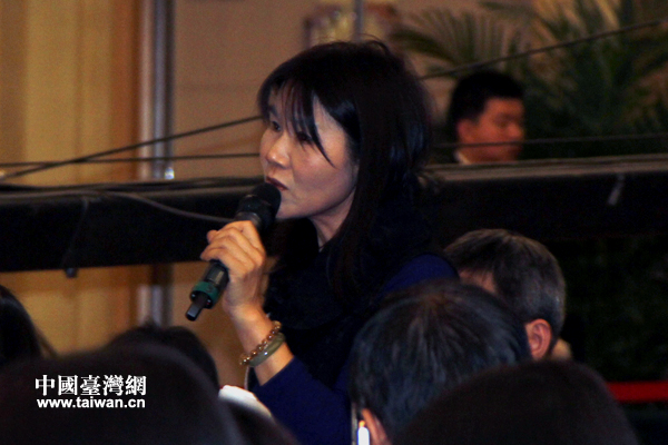 臺(tái)灣《旺報(bào)》記者在新聞發(fā)布會(huì)上針對(duì)兩岸環(huán)保合作相關(guān)問題提問。(中國臺(tái)灣網(wǎng) 高斯斯 攝)