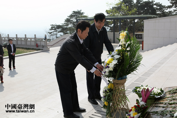 黃志賢副主席、張寧秘書長向無名英雄敬獻花籃。(黃文濤 攝 中國臺灣網發)